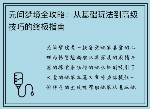 无间梦境全攻略:从基础玩法到高级技巧的终极指南